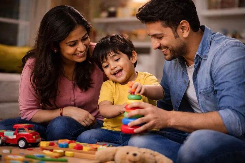 One ordinary evening, I returned home from the office. Inside, our little one sat on the floor with his mother, surrounded by his favorite toys while kids’ rhymes played softly on the TV. Their laughter filled the house. It was a picture of parents and child bonding—warm, joyful, and complete.